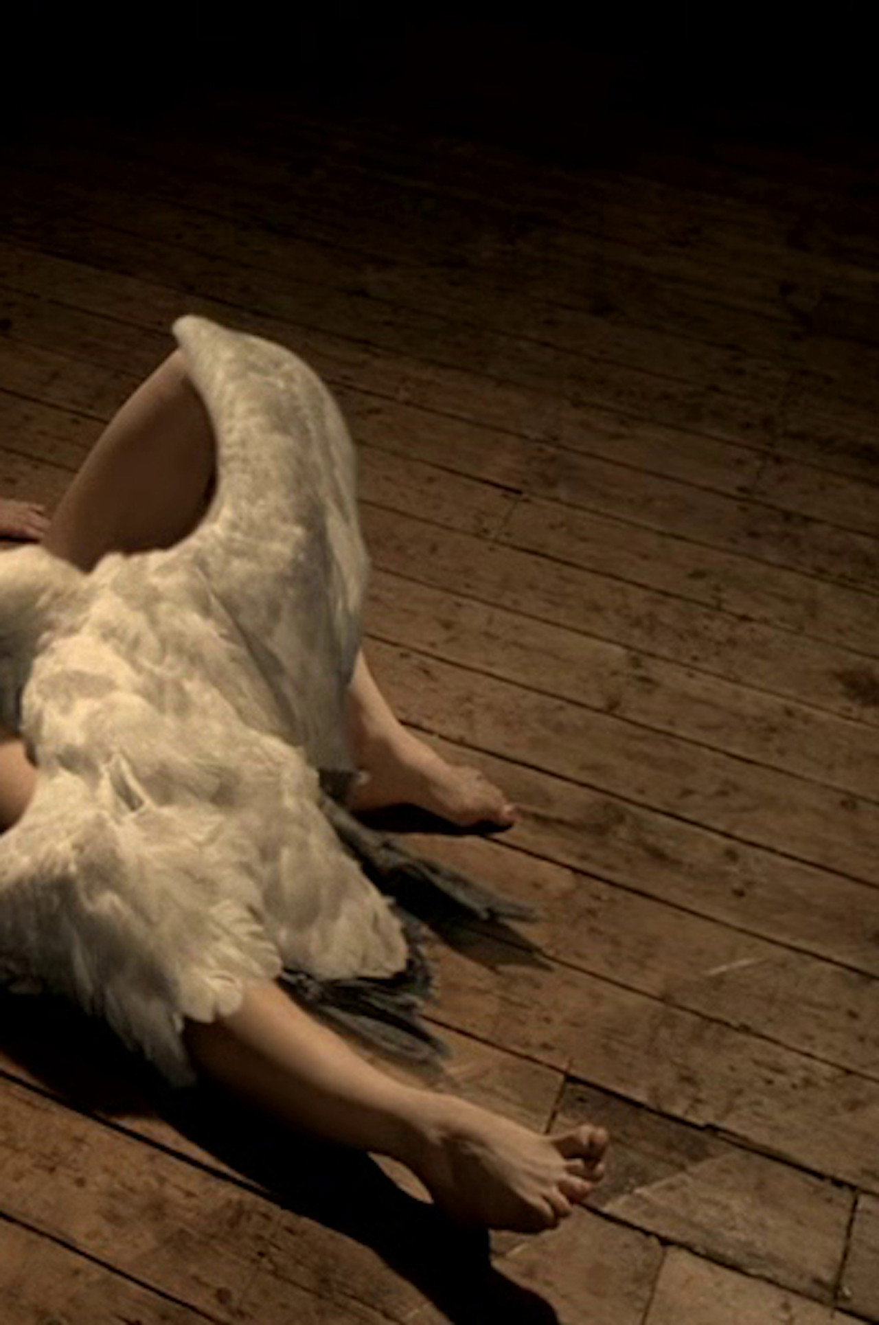 Sam Taylor-Wood says she can't believe the silly questions that people keep asking about her latest work, presented in the Ukrainian pavilion. That White Rush is a video of a young woman lying naked with a white swan decomposing on top of her; her toe twitches as the swan's internal liquids spew out. It is made up of two seamlessly integrated films, one taken of the girl over four minutes and one of the swan over four weeks. "People actually ask me if the girl lay there for four weeks," says Taylor-Wood.